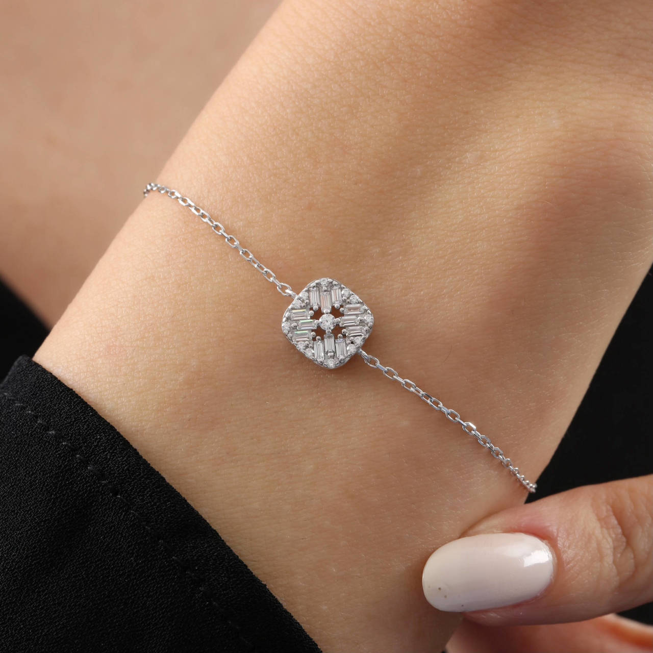 Our silver bracelet with square zirconium design is an elegant bracelet made of silver. It features a square zirconium design that is uniquely placed, giving the bracelet a modern and luxurious appearance. Zirconium is a hard, durable, and lightweight metal, often used in jewelry. The square design adds a geometric touch to the bracelet, giving it a unique and trendy look. The bracelet is perfect for everyday wear or for special occasions. It is a bracelet for all ages and, due to its neutral colors, matches any outfit.