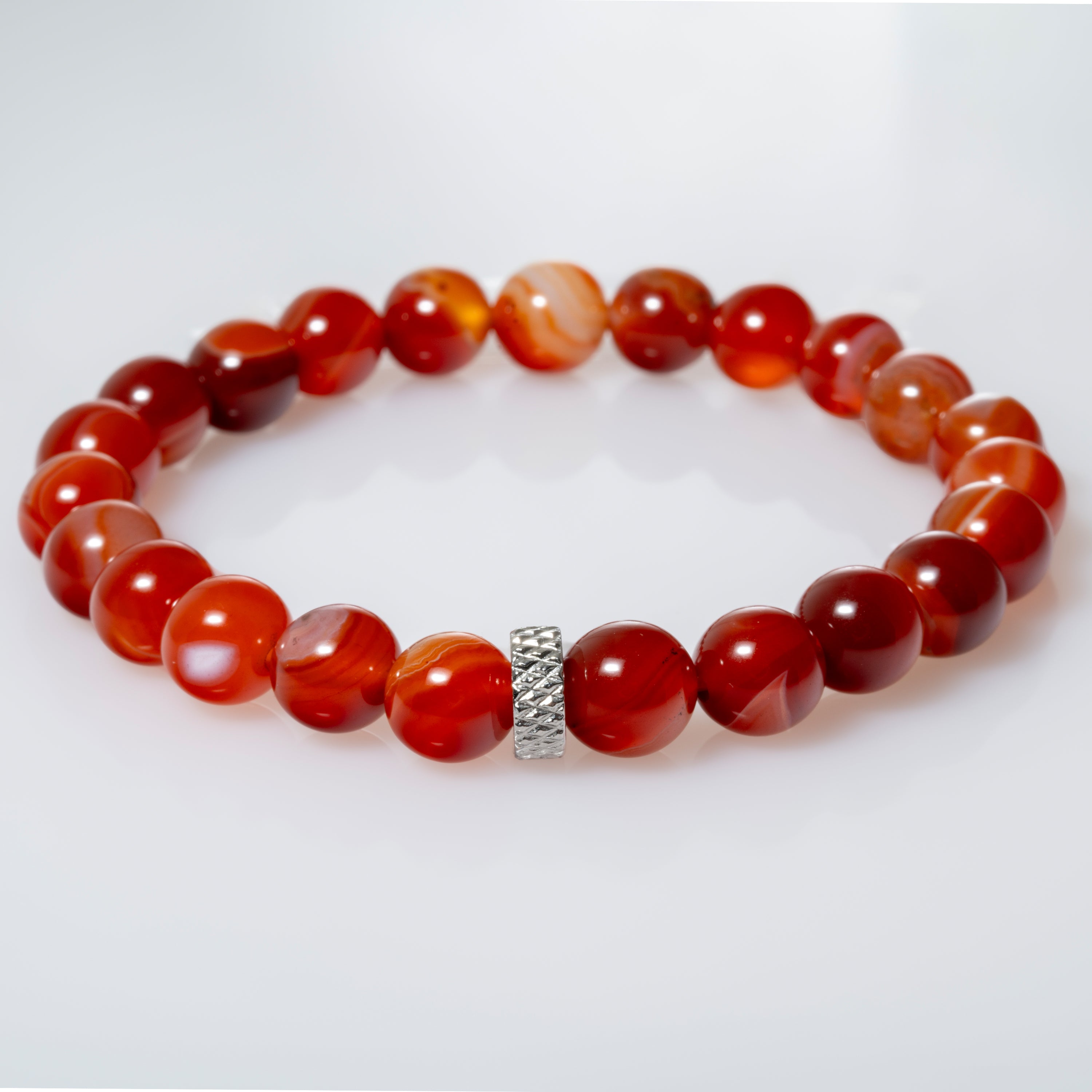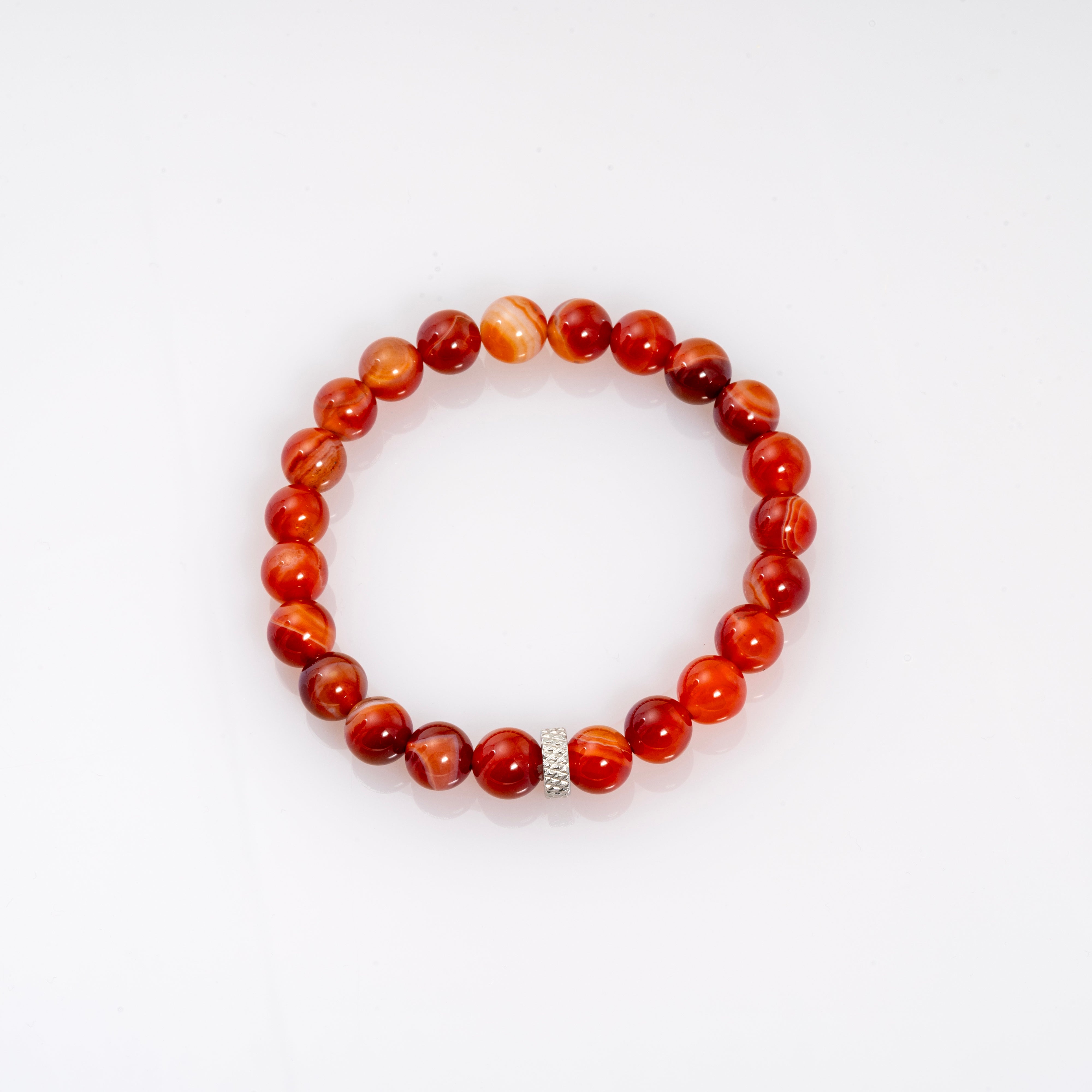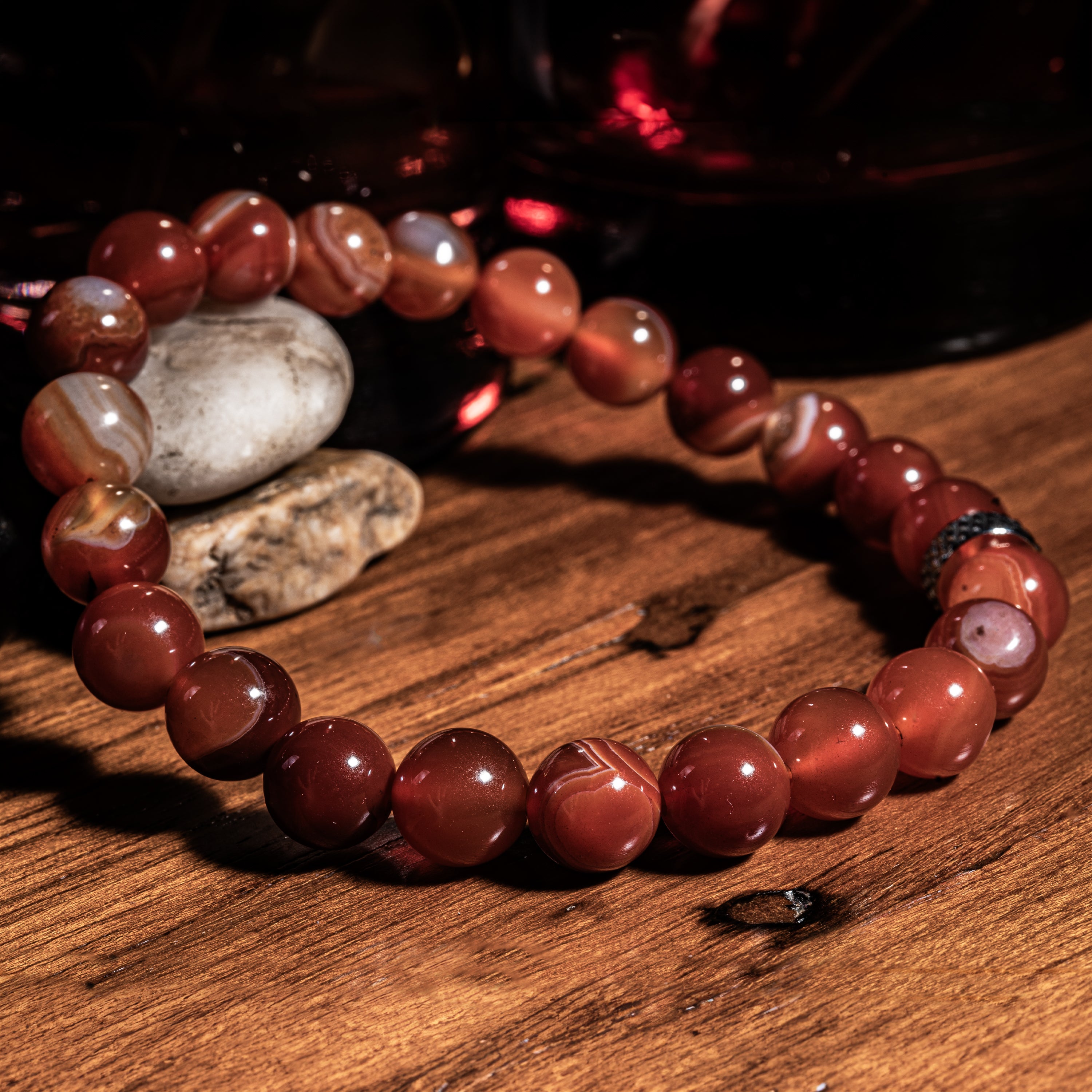 Le bracelet en perles d'agate rouge rayée est un bijou unique et magnifique qui attire immédiatement l'attention. Ce bracelet est composé de perles d'agate rouge de haute qualité, une pierre précieuse connue pour ses belles variations de couleur et ses motifs particuliers. Chaque perle est soigneusement sélectionnée pour sa couleur et sa texture afin de créer un ensemble beau et cohérent. Le bracelet en perles d'agate rouge rayée ne se distingue pas seulement par son apparence frappante, mais offre également de nombreux avantages à celui qui le porte. L'agate rouge est considérée comme une pierre qui aide à augmenter le sentiment de courage et d'énergie. Elle est également associée au chakra racine et peut aider à accroître le sentiment de stabilité et de sécurité. Le bracelet est élastique, ce qui lui permet de s'adapter à presque toutes les tailles de poignet. Il est parfait à porter seul ou à combiner avec d'autres bracelets pour un style unique et personnel. Il peut également être un merveilleux cadeau pour un ami ou un membre de la famille qui aime les pierres précieuses et les bijoux.