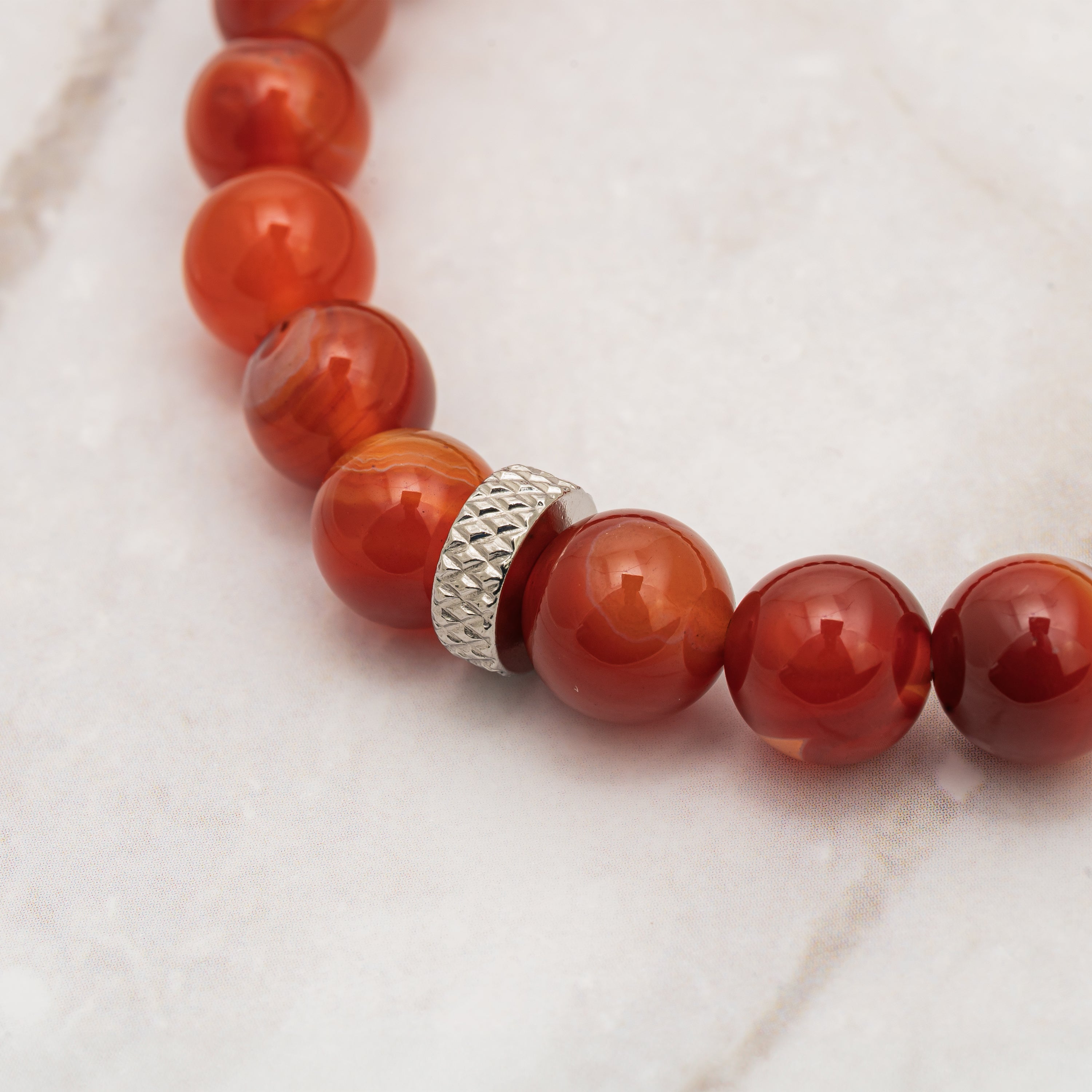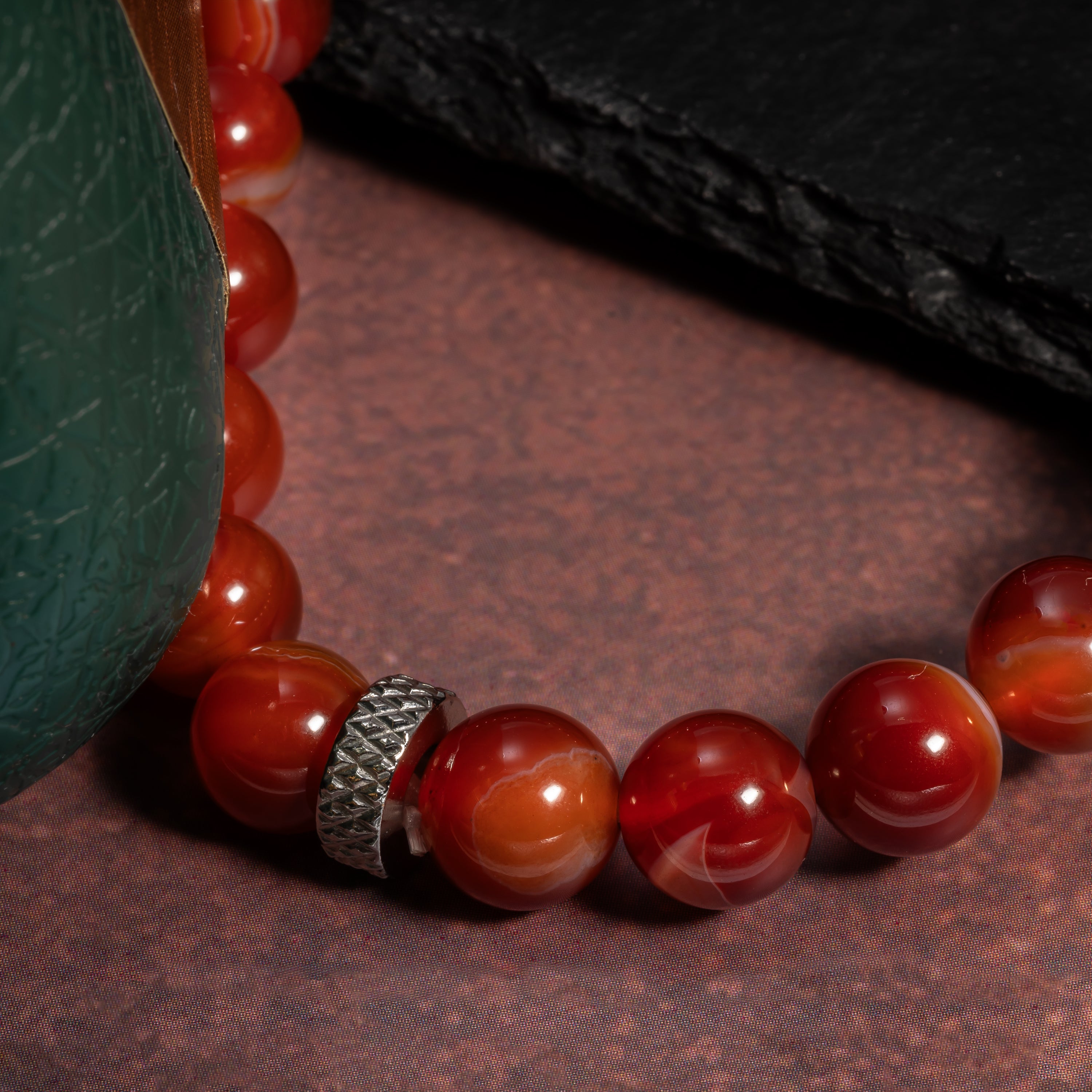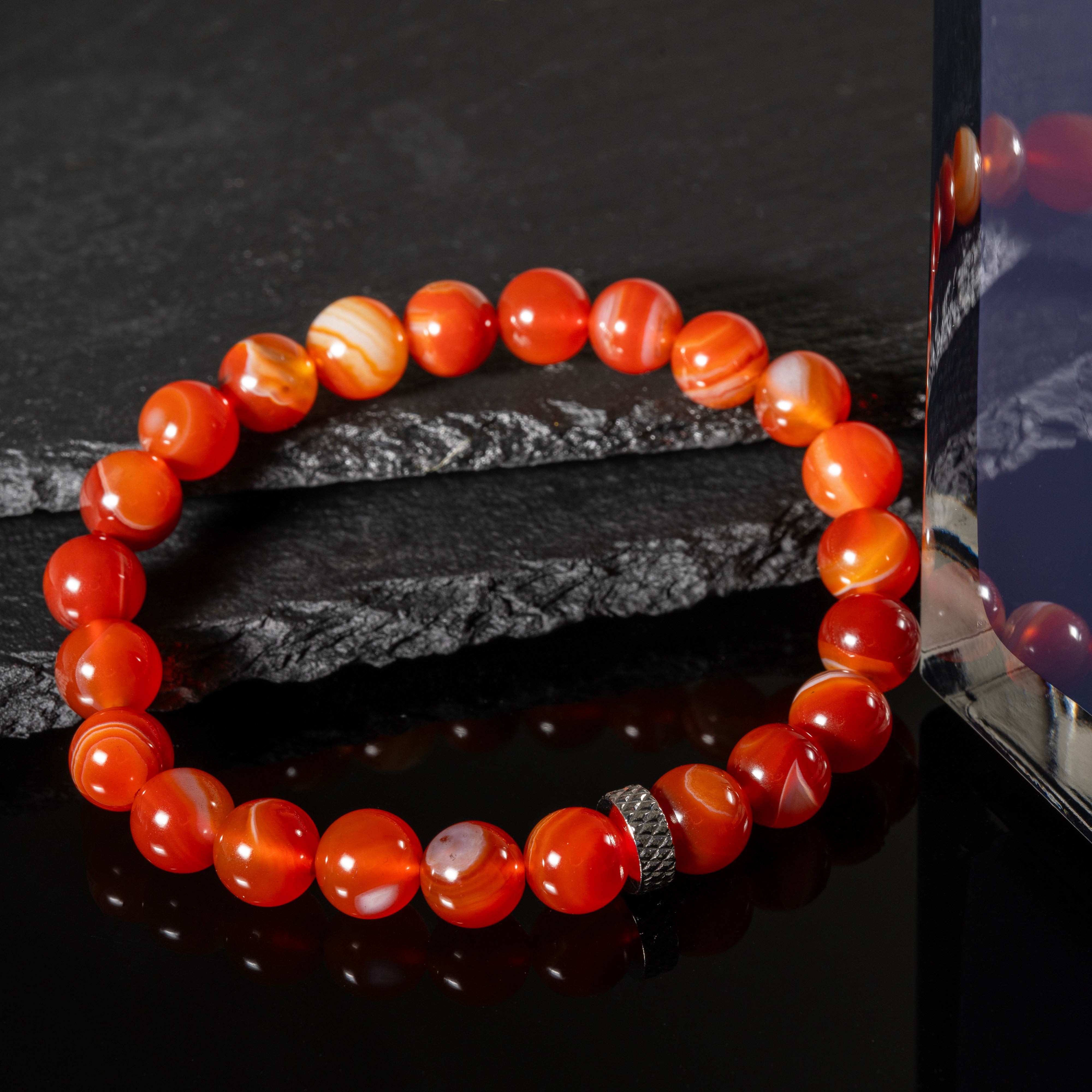 Le bracelet en perles d'agate rouge rayée est un bijou unique et magnifique qui attire immédiatement l'attention. Ce bracelet est composé de perles d'agate rouge de haute qualité, une pierre précieuse connue pour ses belles variations de couleur et ses motifs particuliers. Chaque perle est soigneusement sélectionnée pour sa couleur et sa texture afin de créer un ensemble beau et cohérent. Le bracelet en perles d'agate rouge rayée ne se distingue pas seulement par son apparence frappante, mais offre également de nombreux avantages à celui qui le porte. L'agate rouge est considérée comme une pierre qui aide à augmenter le sentiment de courage et d'énergie. Elle est également associée au chakra racine et peut aider à accroître le sentiment de stabilité et de sécurité. Le bracelet est élastique, ce qui lui permet de s'adapter à presque toutes les tailles de poignet. Il est parfait à porter seul ou à combiner avec d'autres bracelets pour un style unique et personnel. Il peut également être un merveilleux cadeau pour un ami ou un membre de la famille qui aime les pierres précieuses et les bijoux.